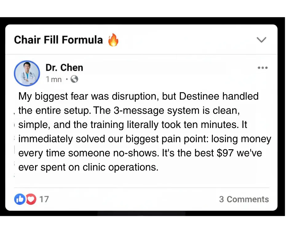 For under a hundred dollars, we turned a major problem into something manageable. Our no-shows are down, revenue is up, and the process was painless. I’d recommend it to any clinic that feels stuck with empty chairs.